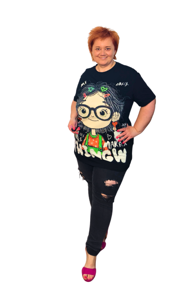 Tento kúsok je pre ženy, ktoré majú rady pohodlie, ale zároveň chcú do outfitu vniesť trochu hravosti a úsmevu. Originálny motív okamžite pritiahne pozornosť a dodá ti šmrnc aj v obyčajný deň.