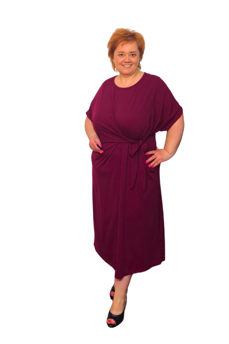Šaty s viazaním - prúžkovaná viskóza - bordové