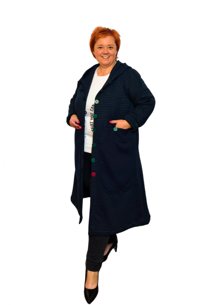 Kratší bavlnený kabát s farebnými gombíkmi a kapucňou