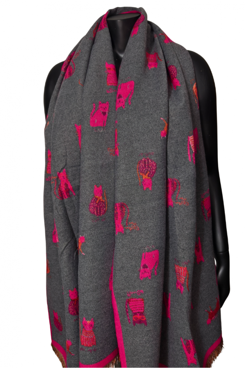 Šál Cats - fuchsia