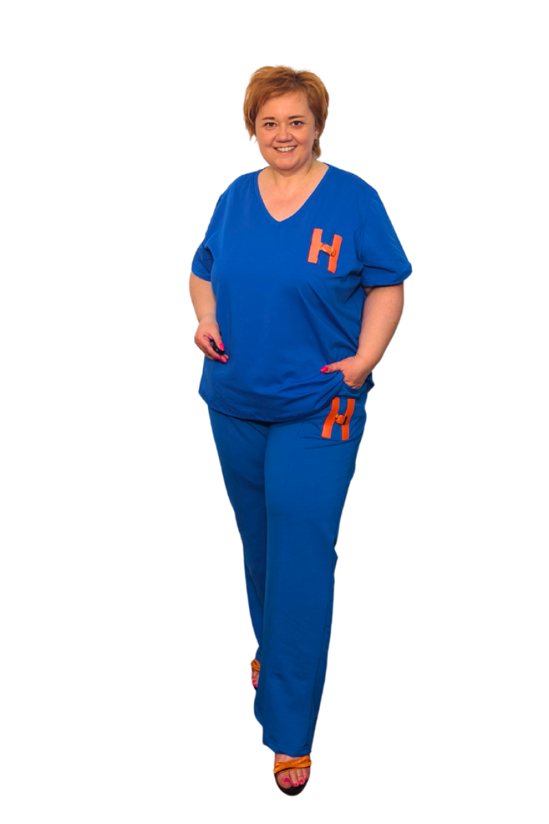 Plus size tepláková súprava s oranžovou nášivkou H - modrá