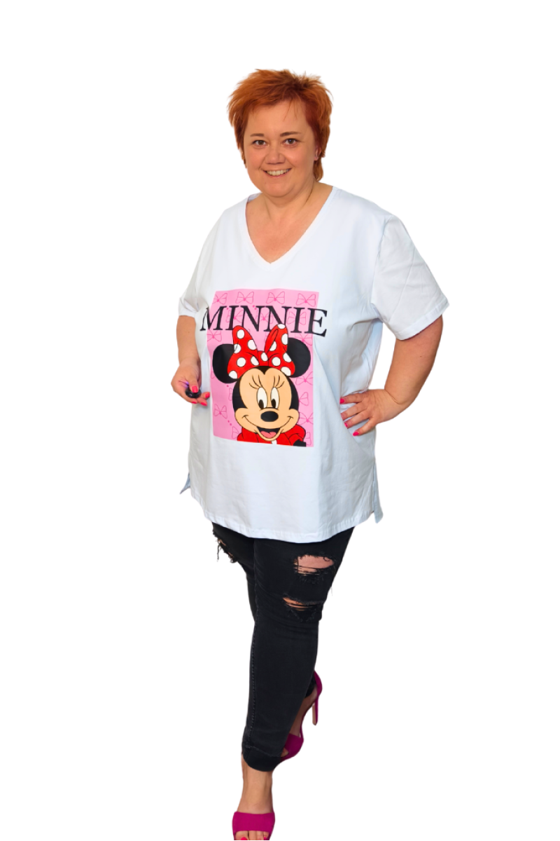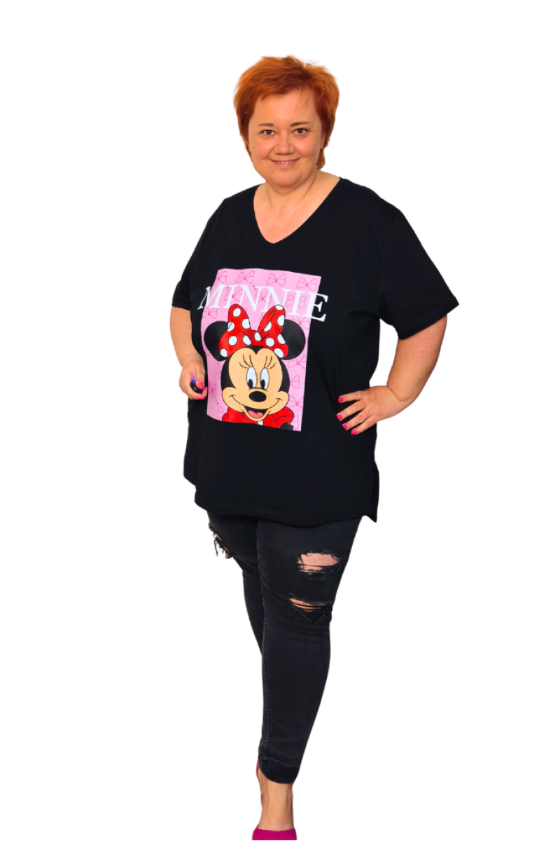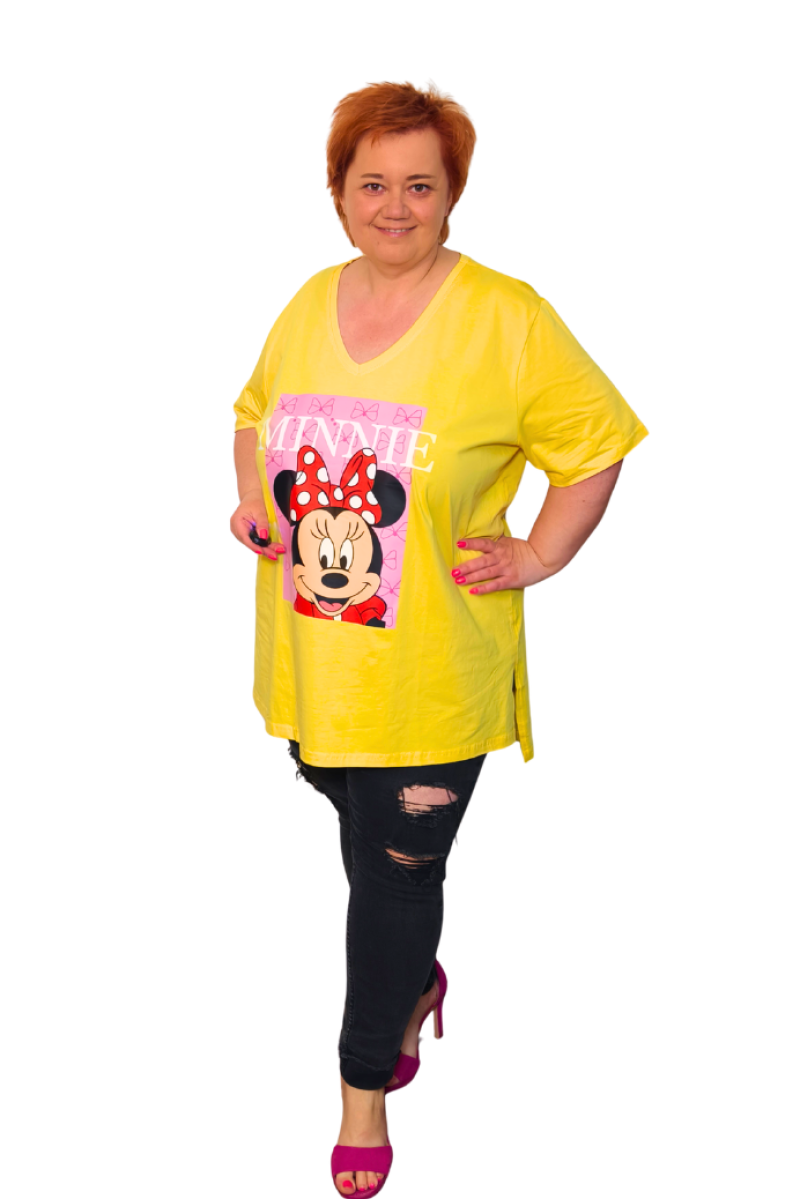 Plus size tričko s potlačou Minie - čierne, biele, žlté