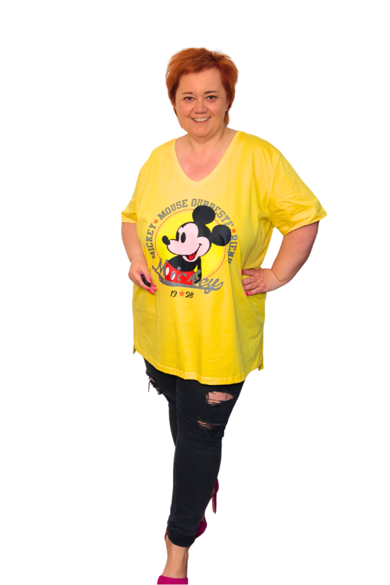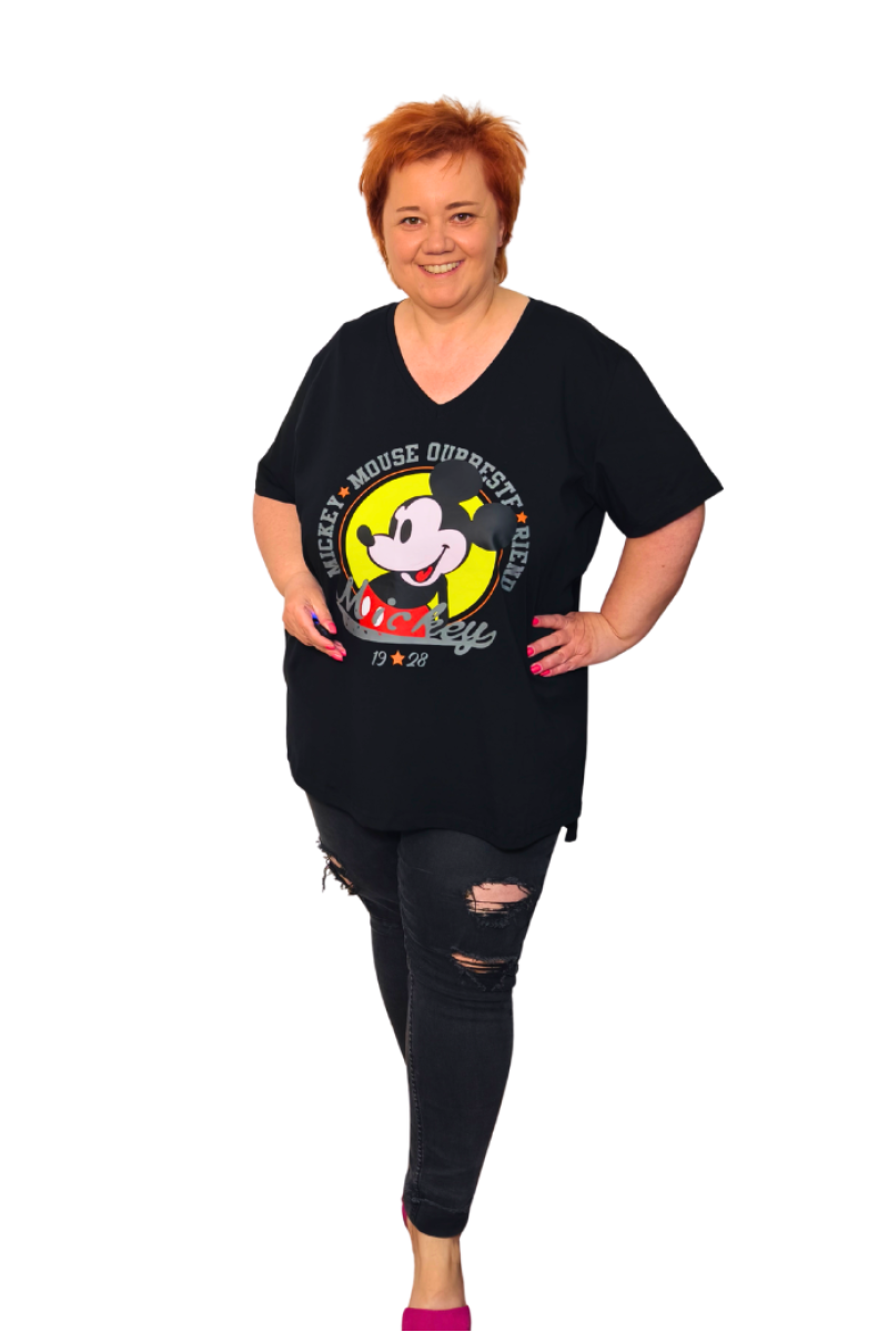 Plus size tričko s potlačou Mickey - čierne a žlté